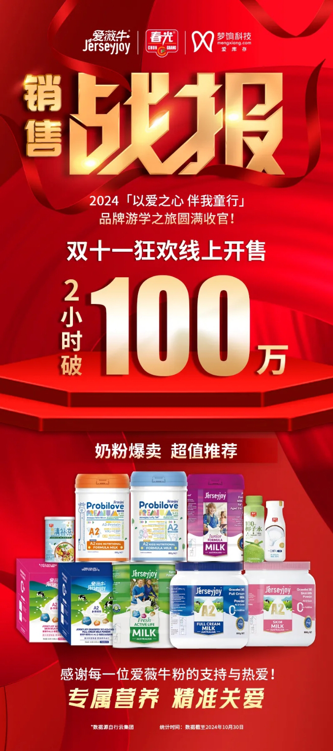 爱薇牛与梦饷科技结缘于2023年,基于长期稳定的业务合作基础,双方打造了合作共赢的产业生态。梦饷科技助力爱薇牛奶粉品牌旗下多款营养乳制品更高效地触达中国消费者,为国民健康增添助力。