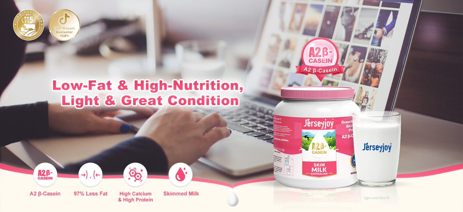 Fat content is 97% lower than 100g of full cream milk powder—you can enjoy it without worry, light burden.